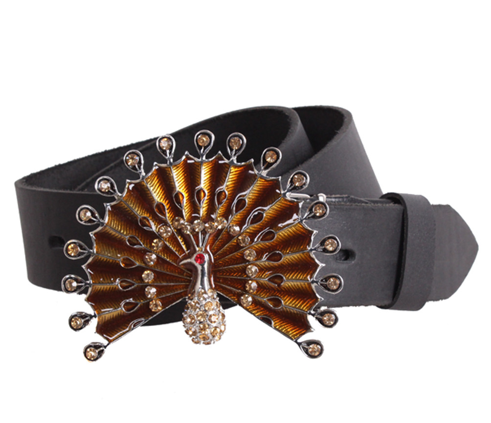 Жіночий ремінь з пряжкою. Оригінальний ремінь для жінок чорного кольору. Декорований аксесуар пряжкою з шикарним павичем з розсипом каміння на хвості і не тільки, а павич є символом краси і гордості. Якість матеріалу в поєднанні з приємною ціною – прекрасний привід для вигідної покупки.